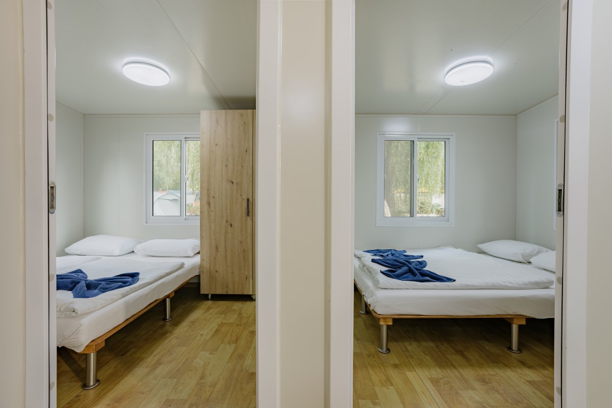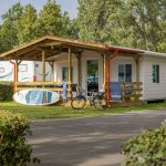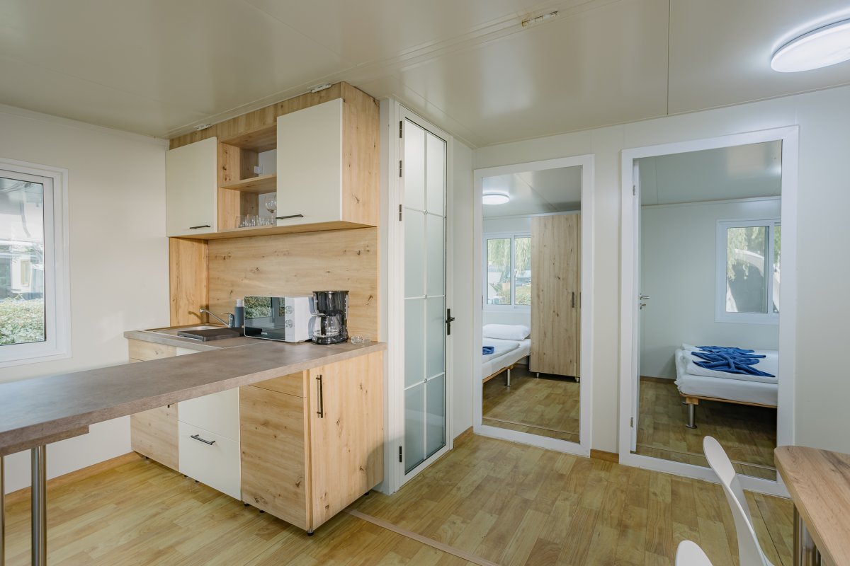 The mobilehomes are equipped with an airconditioner, television, safe and hair drier as well. A baby bed can be cosily placed in the twin bedroom.